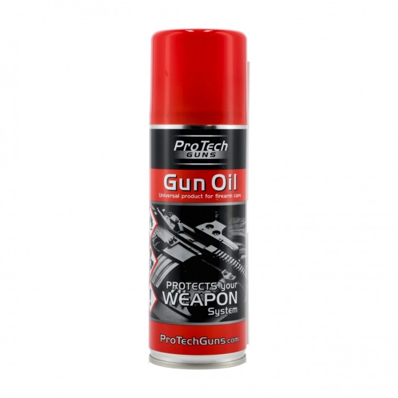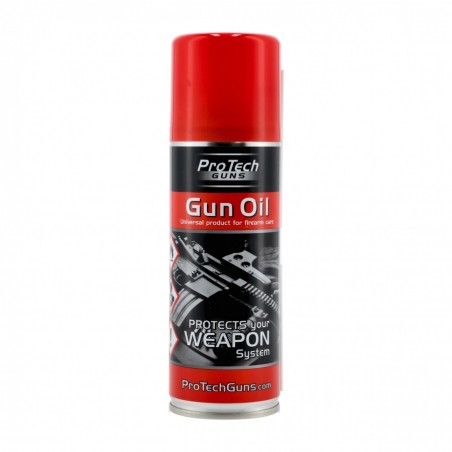 Olej Pro Tech Guns 200 ml to uniwersalny preparat w areozolu, służący do ogólnej konserwacji broni. Dzięki unikalnemu składowi nadaje się do smarowania i konserwacji każdego elementu mechanizmów. Środek jest produktem w całości pochodzenia naturalnego i może być również stosowany do konserwowania i natłuszczania elementów drewnianych. Jego recepturę sprawdzano pod kątem długoterminowego przechowywania i zabezpieczania broni. Preparat ma też wyjątkowo przyjemny i delikatny zapach.