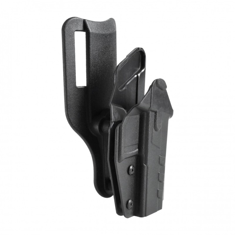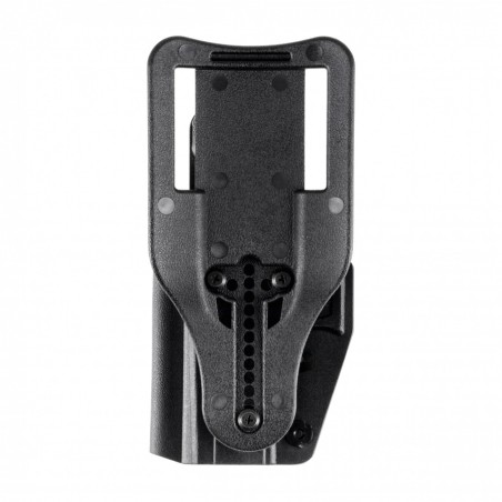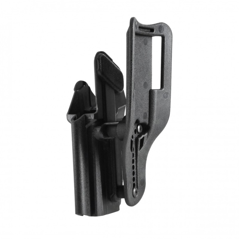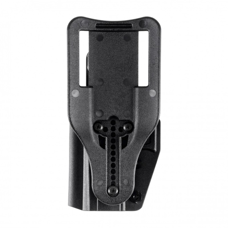 Kabura montowana jest na przelotowej, obniżonej platformie Mid-Ride, która umożliwia łatwe mocowanie na pasie taktycznym o szerokości maksymalnej do 45 mm. Obniżenie i przesunięcie broni na bok pozwala na wygodne i bezpieczne dobycie, a jednocześnie zapewnia, że pistolet nie zahacza o kamizelkę, nawet podczas dynamicznego ruchu czy intensywnych ćwiczeń.