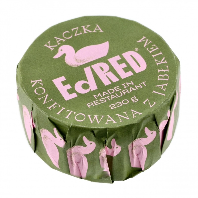 Kaczka konfitowana z jabłkiem to konserwa turystyczna Ed Red Originals, pyszne danie zostało przygotowane wyłącznie z naturalnych składników i umieszczone w ekologicznym opakowaniu z długim terminem przydatności do spożycia. Kaczka konfitowana z jabłkiem to danie nie tylko udowadnia, że tradycja może być nowoczesna, ale przede wszystkim – że luksusowy smak może być gotowy zawsze, kiedy masz na niego ochotę.