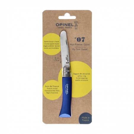 My First Opinel No.07 Blue to składany nóż wyprodukowany przez renomowaną francuską firmę z myślą o najmłodszych. Jego bezpieczne, zaokrąglone krawędzie minimalizują ryzyko skaleczenia podczas użytkowania. Nóż sprawnie poradzi sobie z krojeniem podczas rodzinnych wycieczek i pikników. Model ten, mimo przeznaczenia dorównuje jakością innym modelom marki Opinel. Wygodne i 8-centymetrowe ostrze o zaokrąglonym kształcie wykonano z nierdzewnej stali Sandvik 12C27, która wykazuje wysoką odporność na korozję i uszkodzenia mechaniczne, a także jest łatwa w czyszczeniu. Rękojeść wykonano z drewna bukowego, popularnego ze względu na swoją solidność i właściwości. Bezpieczeństwo młodego adepta sztuki bushcraftu zwiększa solidna blokada Virobloc, umożliwiająca zablokowanie ostrza w pozycji zarówno otwartej, jak i zamkniętej. To przemyślany model, który z pewnością przypadnie do gustu Twojemu dziecku. Model ma rękojeść w kolorze niebieskim.