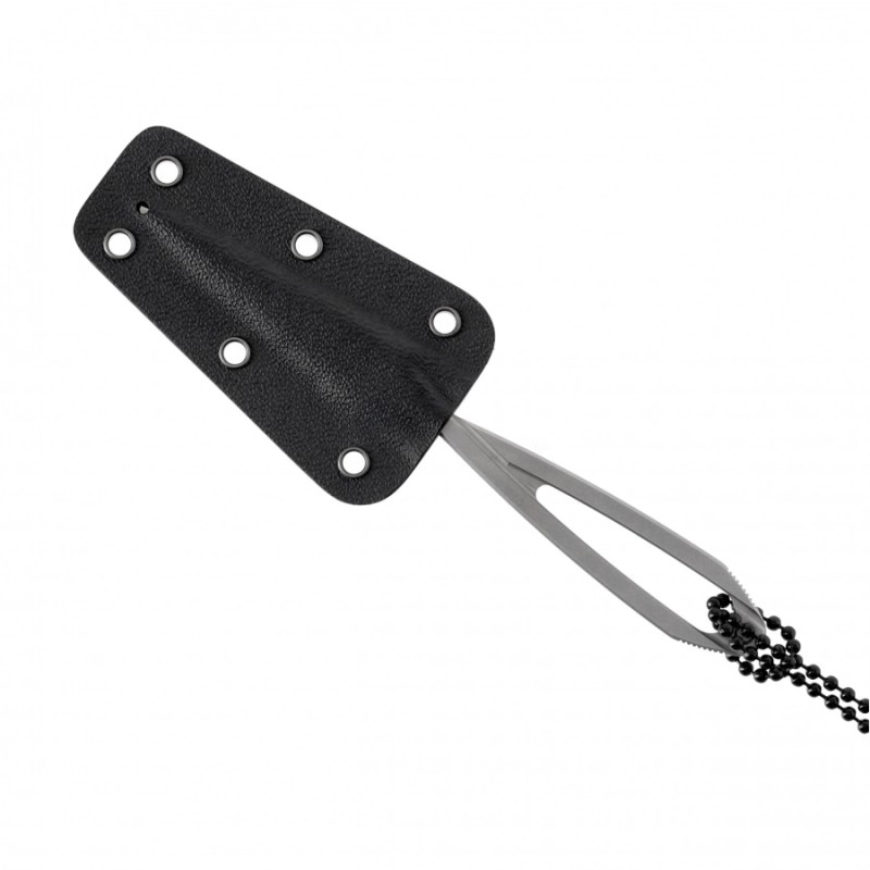 Klingę wykonano z wysokowęglowej, zahartowanej w przedziale 59-61 HRC stali narzędziowej D2. Dzięki temu nóż trzyma krawędź i jest łatwy w ostrzeniu. Głownia o profilu Spear Point, wykończona metodą Bead Blast, zapewnia wysoką precyzję cięcia. Wokół charakterystycznie uformowanej rękojeści, bardzo prostej i poręcznej, ze sporym otworem w środku, można owinąć paracord. WE D-Art posiada czarną kydexową pochwę, którą, dzięki dołączanemu łańcuszkowi, można zawiesić na przykład na szyi. Ponadto, otwory na brzegach pochwy pozwalają przytroczyć nóż do plecaka lub oporządzenia.