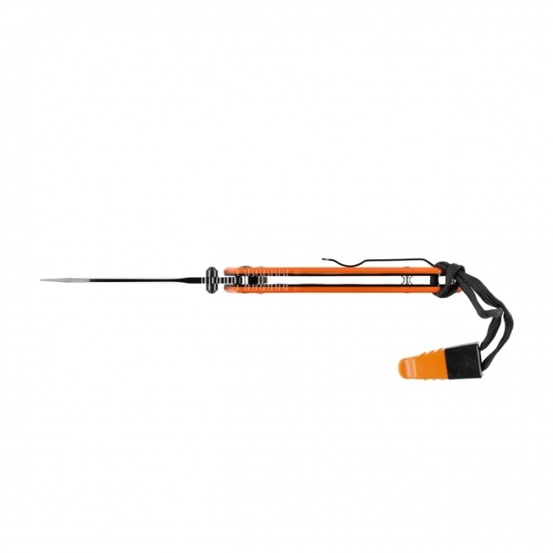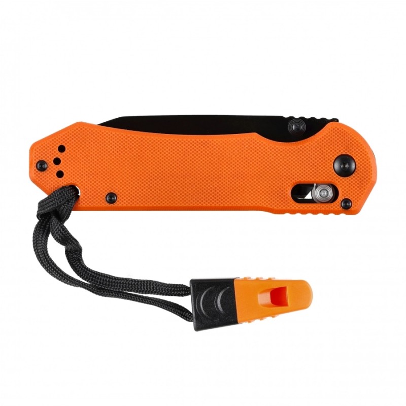 Ganzo G7453-OR-WS z gwizdkiem to poręczny nóż składany, w którym zastosowano głownię ze stali nierdzewnej 440C, sprawdzoną blokadą G-lock, obustronny kołek umożliwiający błyskawiczne rozłożenie ostrza jedną ręką oraz smyczkę z gwizdkiem sygnalizacyjnym.
