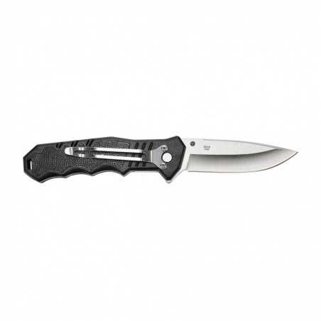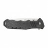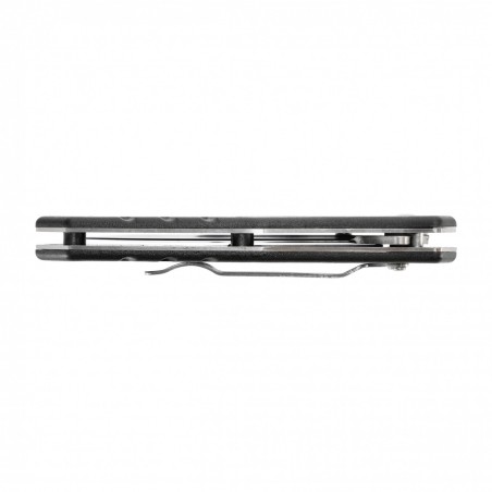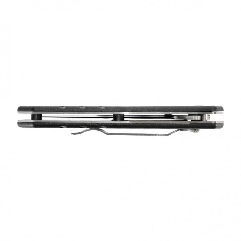 Wygodna rękojesć wykonana jest ze stalowych przekładek do których przytwierdzono teksturowane okładziny wykonane z tworzywa sztucznego. Ną rękojeści producent umieścił funkcjonalny klips, umożliwiający bezpieczne przenoszenie noża.