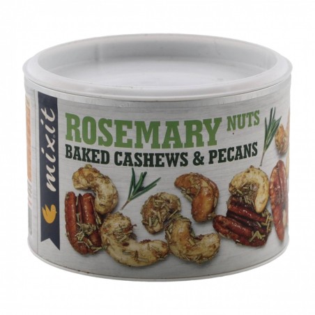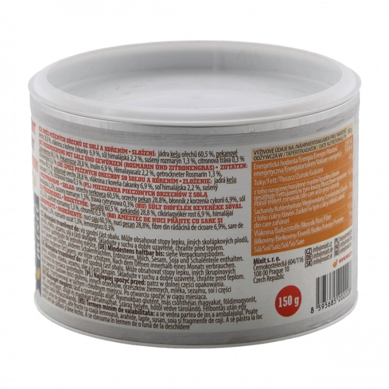 Pieczone orzechy z rozmarynem i trawą cytrynową Mixit Rosemary Nuts 150 g to aromatyczna przekąska, która może być także wykorzystywana jako dodatek do sałatek i past.