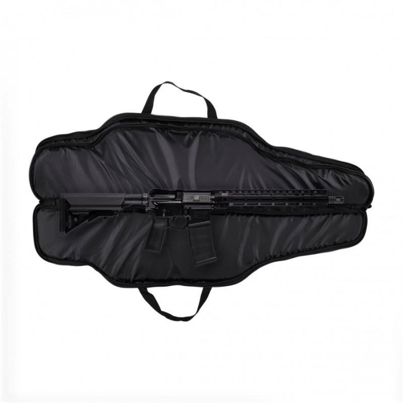 Wnętrze pokrowca wyściełane zostało miękką pianką obszytą materiałem, co skutecznie chroni przenoszoną wewnątrz broń przed przemieszczaniem, zarysowaniami oraz uszkodzeniami w razie upadku. Dodatkowo na środku znajduje się przegroda rozdzielająca w bezpieczny sposób dwie sztuki broni.