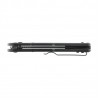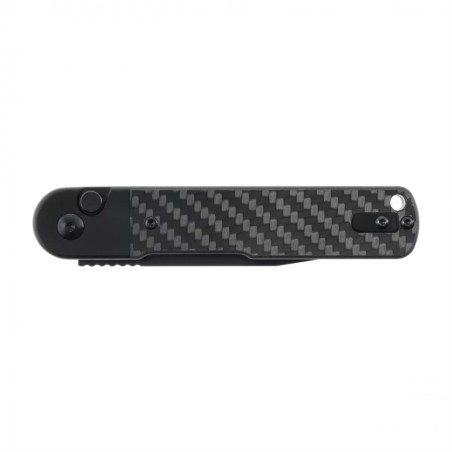 Rękojeść noża tworzą teksturowane okładziny z włókna węglowego o antypoślizgowym teksturowaniu, zapewniają pewny i wygodny chwyt noża. W tylnej części rękojeści znajduje się otwór na linkę lub smycz zabezpieczającą. Producent zadbał także o wygodny transport noża, wyposażając go w klips.