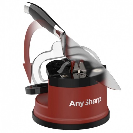 Bardzo skuteczna i prosta w obsłudze ostrzałka do noży. Sekretem ostrzałek AnySharp® są trójkątne płytki ostrzące wykonane z węglika wolframu, który jest niezwykle wytrzymałym materiałem, powstałym wskutek syntezy metalicznego wolframu i węgla w temperaturze do 2000 °C. Twardość tego materiału jest porównywana do diamentu czyli najtwardszego materiału na Ziemi. Właśnie z tego powodu skrawanie ostrza noża jest możliwe i efektywne. Płytki w całości zostały wykonane z węglika wolframu dzięki czemu przewyższają konkurencję żywotnością. Ostrzałka jest wyposażona w gumową przyssawkę z dźwignią PowerGrip®, która zapewnia stabilizację i bardziej precyzyjny proces ostrzenia. Ostrzałka ma prostą konstrukcję z wykończeniem w kolorze czerwonym.