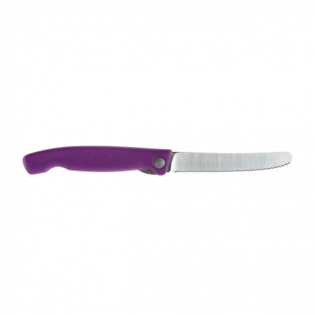 Nóż kuchenny składany Victorinox Swiss Classic Pikutek to popularny nóż do warzyw i owoców, wyposażony w ząbkowaną głownię oraz wyprofilowaną rękojeść. Jest to narzędzie, które w kuchni jest w stanie zastąpić większość klasycznych kuchenniaków. Nóż doskonale radzi sobie nie tylko z obieraniem warzyw i owoców, ale również z krojeniem miękkich serów, wędlin, pieczywa, może być używany do smarowania, świetnie sprawdzi się przy filetowaniu i szatkowaniu zieleniny. Tą niezwykłą funkcjonalność nóż zawdzięcza zastosowaniu dobrej stali oraz agresywnie profilowanych ząbków, które zachowują swoje właściwości nawet po częściowym stępieniu.