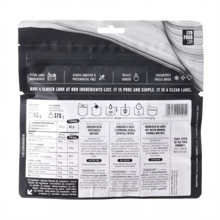 Współpracując z ekspertami ds. żywienia i stosując nowoczesne, zdrowe technologie, firma LYOFOOD dostarcza optymalnie zbilansowane posiłki, które smakują jak domowe. Dzięki usunięciu 98% wody dania są znacznie lżejsze niż standardowe produkty i nie zawierają konserwantów ani sztucznych dodatków.