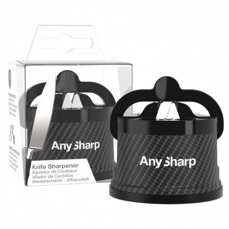 Bardzo skuteczna i prosta w obsłudze ostrzałka do noży. Sekretem ostrzałek AnySharp® są trójkątne płytki ostrzące wykonane z węglika wolframu, który jest niezwykle wytrzymałym materiałem, powstałym wskutek syntezy metalicznego wolframu i węgla w temperaturze do 2000 °C. Twardość tego materiału jest porównywana do diamentu czyli najtwardszego materiału na Ziemi. Właśnie z tego powodu skrawanie ostrza noża jest możliwe i efektywne. Płytki w całości zostały wykonane z węglika wolframu dzięki czemu przewyższają konkurencję żywotnością. Ostrzałka jest wyposażona w gumową przyssawkę z dźwignią PowerGrip®, która zapewnia stabilizację i bardziej precyzyjny proces ostrzenia. Ostrzałka ma prostą konstrukcję z wykończeniem w kolorze grafitowym.
