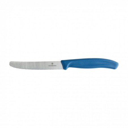 Nóż do pomidorów z ząbkami Victorinox ma długą na 11 centymetrów głownię. Jej ząbkowane ostrze pokroi nie tylko miękkie warzywa, ale sprawdzi się doskonale także przy krojeniu pieczywa. Cięcia nie uszkodzą krojonych produktów i pozostawią eleganckie, równe brzegi. Warto wspomnieć, że czubek noża zaokrąglono, dzięki czemu przypadkowe skaleczenie jest mniej prawdopodobne. Czyni to z Victorinoxa narzędzie bardzo bezpieczne.