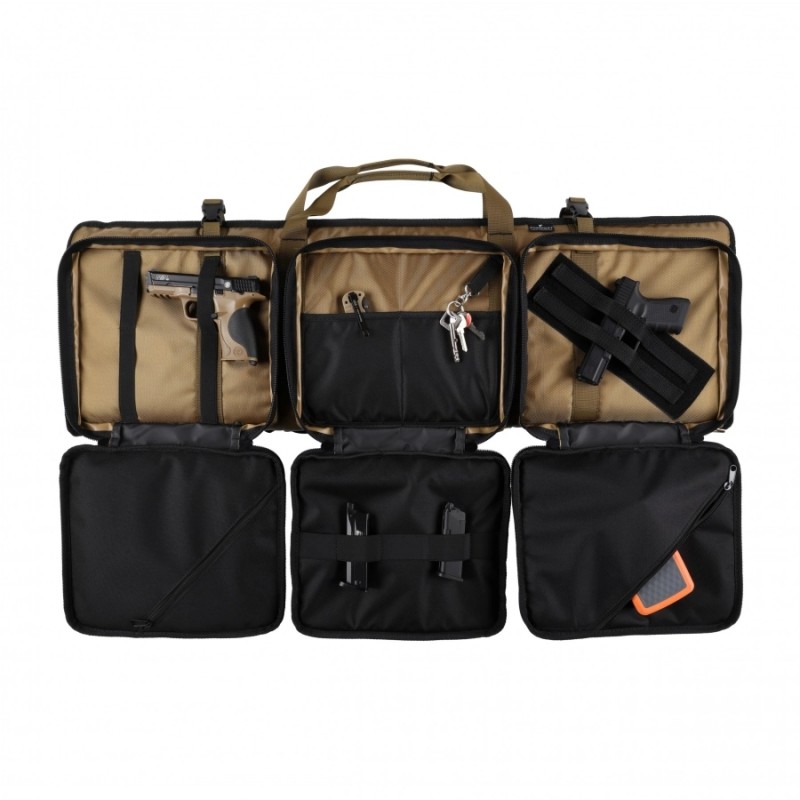 Model ma wzmocnione uchwyty transportowe oraz w pełni regulowane pasy nośne, co pozwoli Ci na komfortowe przenoszenie pokrowca, niezależnie od warunków terenowych. Dodatkowe pasy wewnątrz stabilizują zawartość pokrowca przed jej przesuwaniem podczas noszenia. Elegancka kolorystyka oraz haft przedstawiający celownik VX podkreśla profesjonalny charakter produktu.