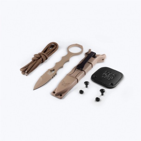 Benchmade 177SN Mini SOCP to mały nóż taktyczny wykonany w całości ze stali nierdzewnej 440C, pokrytej ceramiczną farbą Cerakote Nóż ma konstrukcję full-tang (z ang. pełny trzpień), co oznacza, że wykonano go z jednego kawałka stali
