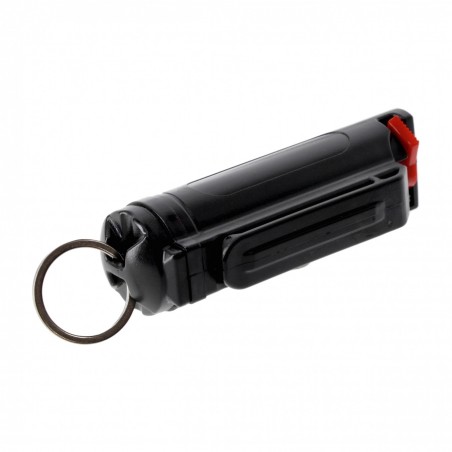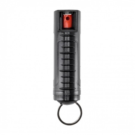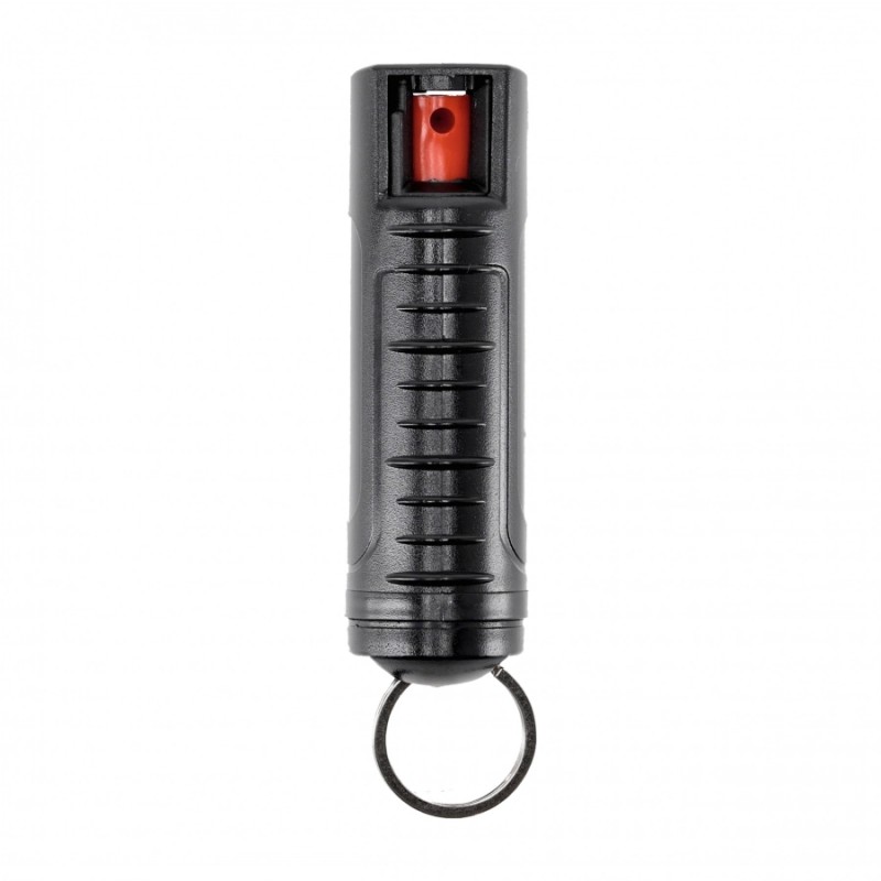 Solidna obudowa z wytrzymałego polimeru została zaprojektowana na standardowe, wymienne wkłady 20 ml, z których jeden jest już zamontowany. Głowica typu Flip-Top z przesuwanym bezpiecznikiem zapobiega przypadkowemu użyciu, a mocny brelok i klips umożliwiają wygodne przypięcie do kluczy, paska, szlufki czy plecaka. Gaz Guard ProKey nie wymaga pozwolenia i może być legalnie używany zgodnie z przeznaczeniem.