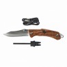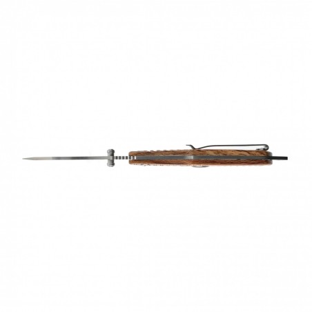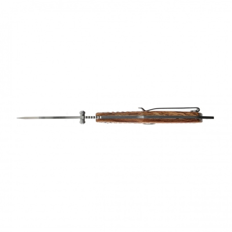 W nożu zastosowano rękojeść z tworzywa G10 o wyglądzie drewna. Jest to wytrzymały i lekki kompozyt wykonany z laminatu szklano-epoksydowego. Charakteryzuje się wysoką odpornością na wilgoć, chemikalia i ekstremalne temperatury. Dodatkowo teksturowana powierzchnia przekłada się na pewny chwyt, co dodatkowo zwiększa kontrolę nad nożem podczas użytkowania.