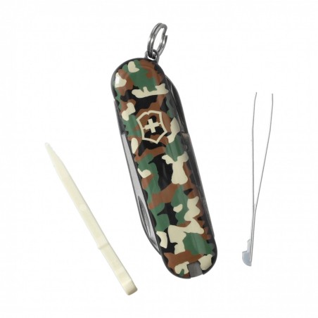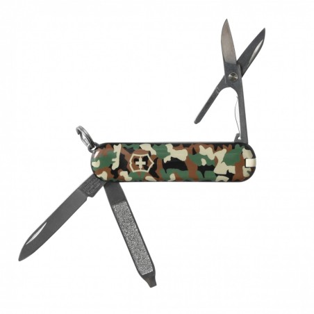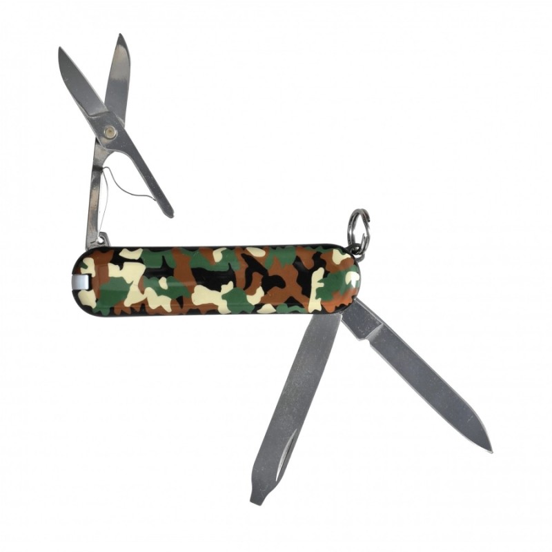 Classic SD 0.6223.94 to wariant kultowego scyzoryka Victorinox w nowoczesnym stylu Camouflage. Stylowe, maskujące okładziny nadaje mu wyjątkowego militarnego charakteru, zachowując przy tym wszystkie praktyczne funkcje klasycznego modelu.