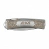 Nóż składany EKA Classic 5 to sprawdzona konstrukcja wywodzącą się ze Szwecji. Nóż charakteryzuje się wysoką jakością wykonania oraz tradycyjną stylistyką. Ostrze zostało wykonane ze stali nierdzewnej Alleima 12C27 o twardości na poziomie 57-59 HRC. Czyni go to idealnym narzędziem np. dla myśliwych oraz kolekcjonerów. Ten prosty i funkcjonalny nóż charakteryzuje się wyważeniem, ergonomią oraz ścisłym spasowaniem ze sobą poszczególnych elementów. Cechą szczególną prezentowanego modelu jest elegancka, stalowa rękojeść z tematycznym grawerunkiem oraz logiem EKA.