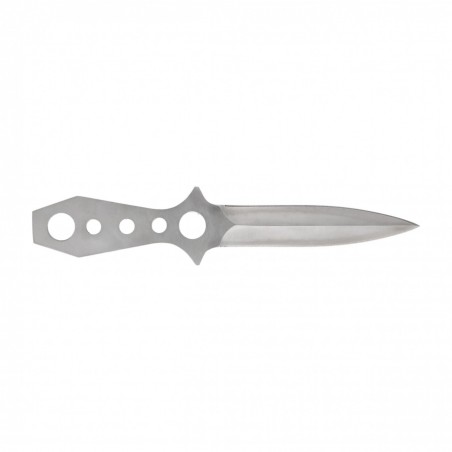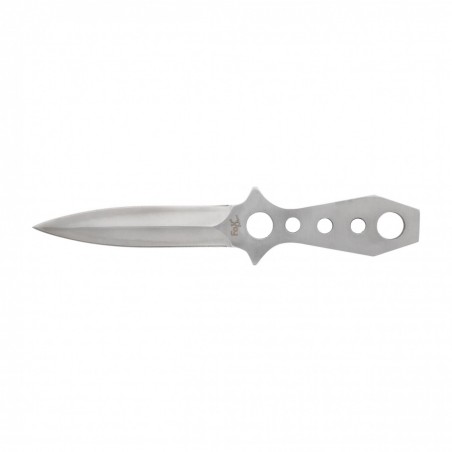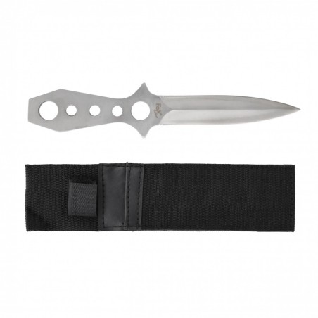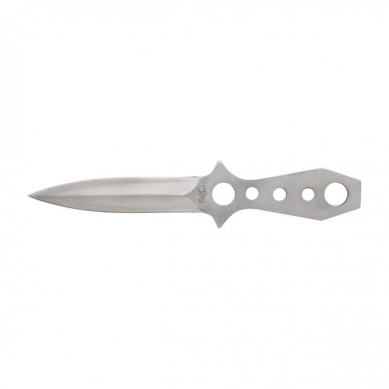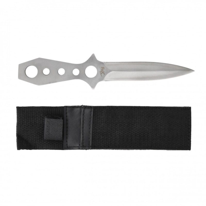 Nóż do rzucania Fox Outdoor to wykonana z jednego kawałka metalu (Full-tang) rzutka. Narzędzie to idealnie sprawdzi się do ćwiczenia celności w rzucaniu do celu oraz jako niewielki i poręczny nożyk o zastosowaniu bushcraftowo-survivalowym. Narzędzie jest bardzo dobrze wyważone i wykonano go z jednego kawałka stali. Ostrze jest obustronne i zakończone wydatnym szpicem, umożliwiającym przebicie się przez więkoszość materiałów. Cechą charakterystyczną jest bardzo cienki profil noża, co ułatwia jego przechowywanie. Rękojeść ma konstrukcję ażurową i umożliwia przymocowanie linki. W zestawie otrzymasz nylonową kaburę z zapięciem na rzep.