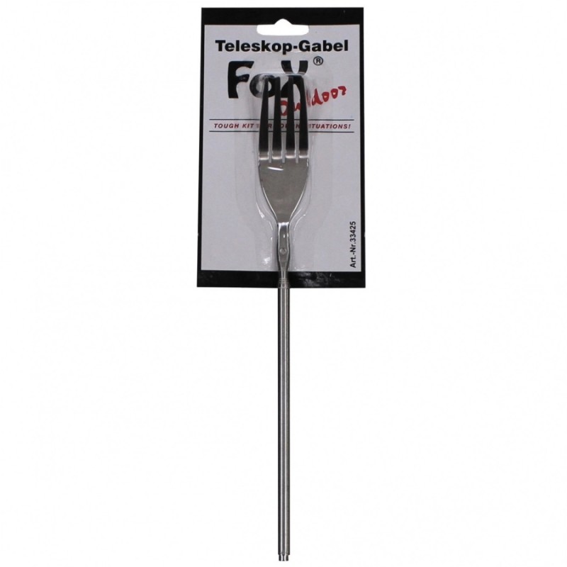 Widelec turystyczny wykonany ze stali nierdzewnej, o teleskopowej rozsuwanej konstrukcji. Po pełnym rozłożeniu widelec osiąga 65 cm długości (23 cm po zsunięciu). Widelec teleskopowy Fox Outdoor to praktyczny element wyposażenia każdego miłośnika outdooru, przydatny w obozowej kuchni, na ognisku, grillu, a także w domowej kuchni.