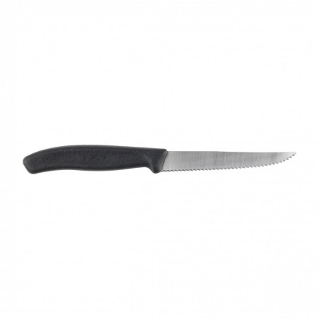 Victorinox 6.7233 to doskonały nóż świetnie sprawdzi się w Twojej kuchni. Zaopatrzony jest w uniwersalne, ząbkowane ostrze przydatne m.in. do przyrządzania steków, warzyw i owoców. Koniec głowni jest zaostrzony, dzięki temu ułatwia wydłubywanie. Matowe tworzywo propylenowe, z którego jest wykonana rączka, zapobiega wyślizgnięciu się i zapewnia pewność chwytu. Doskonałej jakości stal i niezwykle solidne wykonanie dają gwarancję najwyższej jakości. Noże są starannie ostrzone i odznaczają się wysoką trwałością.