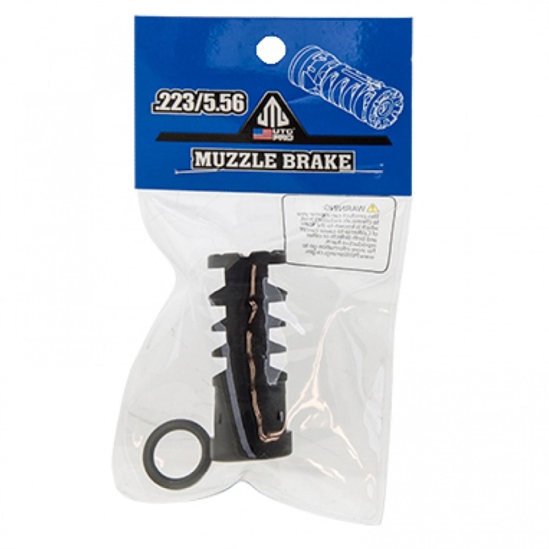 Hamulec UTG PRO TLUMD01 ma zwartą konstrukcję ze stali nierdzewnej, w której zastosowano 6 bocznych szczelin odpowiedzialnych na wydajne rozpraszania gazów prochowych. Urządzenie wylotowe można zamontować na dowolnej broni .223/5.56 mm z gwintem 1/2"X28 UNEF. UTG PRO TLUMD02 efektywnie ogranicza odrzut i podrzut broni, co pozwala na lepszą kontrolę karabinka, wpływając tym samym na celność i powtarzalność strzałów oraz komfort obsługi broni. W zestawie podkładka kontrująca typu crush-washer.