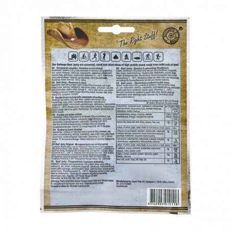 Przekąska jest dobrym źródłem białka, niezbędnego dla budowy mięśni, a jednocześnie zawiera mało cukrów i tłuszczu, co czyni ją odpowiednim wyborem dla osób zwracających uwagę na zbilansowaną dietę. Do jej produkcji wykorzystano tylko najlepsze kawałki mięsa. Gwarantuje to wysoką jakość i doskonały smak. Niewielkie wymiary opakowania pozwalają wygodnie przenosić wołowinę.