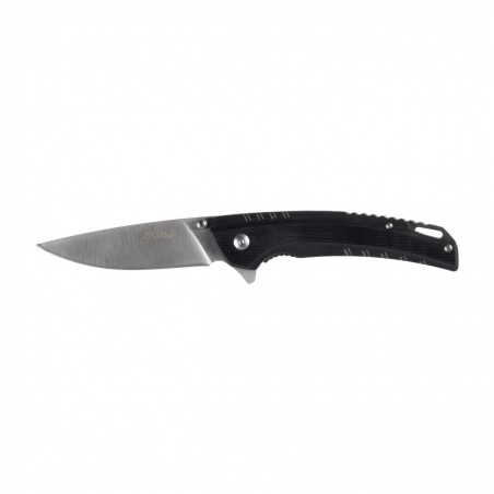 Nóż otwierany jest za pomocą obustronnego kołka pod kciuk lub flippera, który po rozłożeniu pełni funkcję jelca, skutecznie chroniąc palce przed zsunięciem się na ostrze. Zastosowane łożyska kulkowe odpowiadają za wyjątkowo płynną i szybką pracę głowni, dając satysfakcję i pewność przy każdym otwarciu.