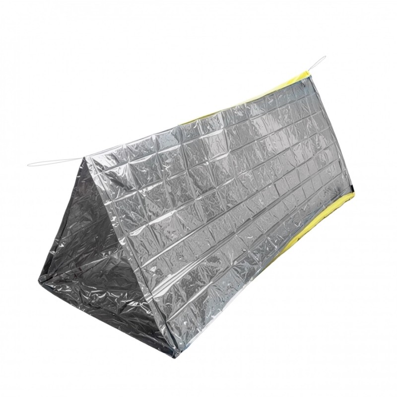 Konstrukcja namiotu skutecznie ogranicza utratę ciepła organizmu, a jednocześnie może chronić przed nadmiernym nasłonecznieniem. Wzmocnienia taśmą w newralgicznych miejscach zwiększają trwałość całości, nawet przy intensywnym użytkowaniu w terenie. Duża powierzchnia odblaskowej folii znacząco poprawia widoczność użytkownika, co ma kluczowe znaczenie w sytuacjach kryzysowych i podczas akcji ratunkowych.