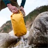Lifeventure Storm Dry Bag 5 L to profesjonalny worek wodoszczelny, zaprojektowany do ochrony przenoszonego ekwipunku w najbardziej niesprzyjających warunkach atmosferycznych. Wykonany został z wytrzymałego i lekkiego nylonu 420D w technologii Rip-Stop i pokryty z powłoką PU/TPU, dzięki czemu cechuje go wodoodporność na poziomie do 15 000 mm słupa wody. Zastosowanie podklejanych szwów oraz szczelnego zamknięcia typu Roll Top z klamrą Kross zabezpieczy Twoją elektronikę, dokumenty czy zapasową odzież przed przemoknięciem. Co więcej, eliptyczny kształt dna torby ułatwia pakowanie oraz optymalizuje przestrzeń wewnątrz plecaka czy też sakwy rowerowej.