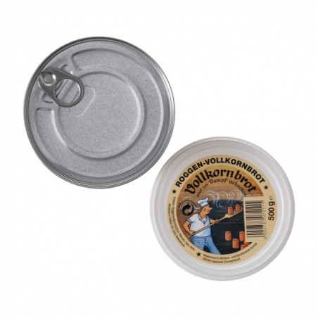 Chleb żytni w puszce Arpol 500 g to pieczywo pełnoziarniste o wydłużonym terminie ważności, pakowane do hermetycznej puszki.