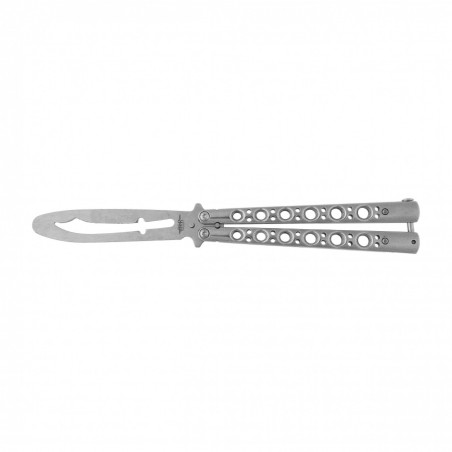 Nóż wykonano ze stali nierdzewnej, co zapewnia odpowiedni ciężar i wyważenie. Klinga pozbawiona jest krawędzi tnącej, ma także łagodnie zakończony sztych, dlatego nóż może być wykorzystywany nie tylko do nauki trików, ale także do treningu samoobrony i nauki walki nożem. Za blokowanie noża w pozycji otwartej i zamkniętej odpowiada prosta blokada typu T-Latch. Rękojeść wykonano z wytrzymałej stali nierdzewnej, w której wycięto otwory, dzięki czemu zredukowano masę noża, a tym samym zwiększono komfort użytkowania oraz treningu Balisongiem.