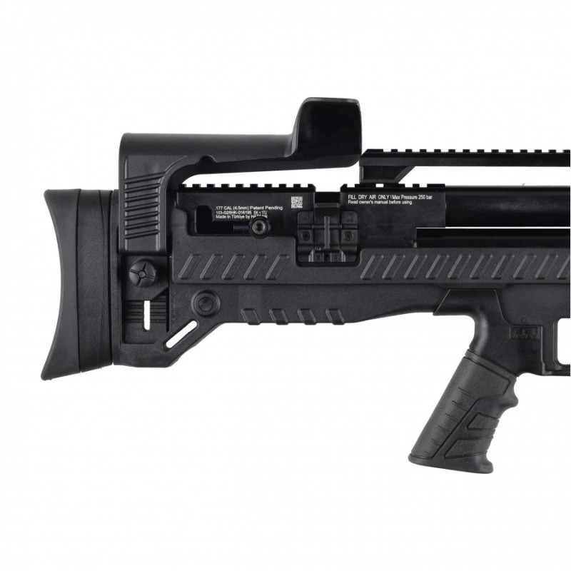 Ergonomiczne łoże zostało wyposażone w gumowany chwyt pistoletowy w stylu AR15 oraz dolną szynę akcesoryjną umożliwiającą mocowanie np. bipodu, który stabilizuje wiatrówkę w trakcie strzelania. Kolbę można dostosować do budowy i preferencji strzelca za sprawą regulowanej baki policzkowej. Dzięki takiej funkcjonalności strzelec może dostosować wysokość baki w zależności od wysokości montażu optyki.