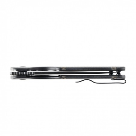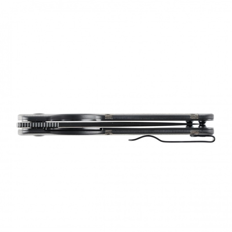 Rękojeść wykonano z połączenie mikarty i laminatu G-10, co gwarantuje komfort i pewny chwyt podczas użytkowania. Jej ergonomiczny kształt sprawia, że nóż doskonale leży w dłoni, nawet podczas dłuższego użytkowania. Nóż jest również wyposażony w klips do noszenia, umożliwiający bezpieczne i dyskretne przymocowanie do paska lub kieszeni.