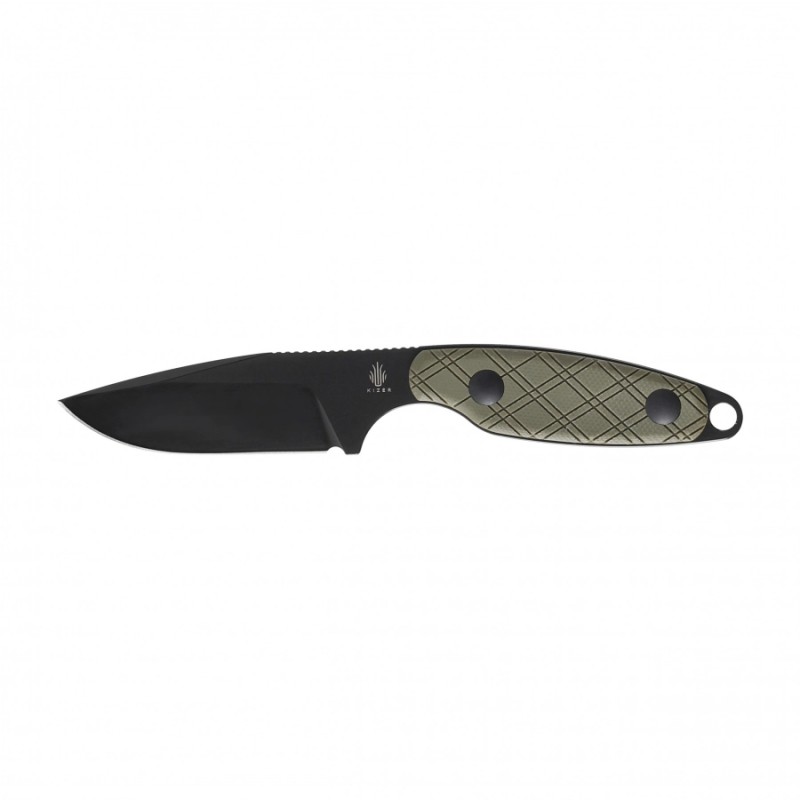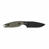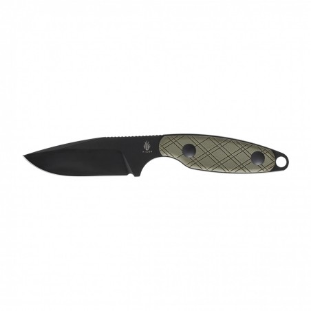 Rękojeść noża wykonana jest z G10, czyli kompozytu z włókna szklanego i syntetycznej żywicy, a stalowa konstrukcja Full Tang gwarantuje trwałość i niezawodność w każdej sytuacji. Delikatne frezy na okładzinach zwiększają przyczepność do dłoni, zapewniając pewny chwyt nawet w trudnych warunkach. Dodatkowo nóż wyposażono w otwór na zakończeniu rękojeści, umożliwiający zamocowanie linki lub paracordu, co ułatwia chwytanie noża.