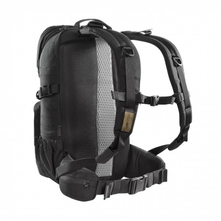 Tylny panel plecaka został wyposażony w ergonomiczną wyściółkę z pianki oraz elementy wzmacniające z aluminium, które można indywidualnie dopasować do sylwetki użytkownika. Regulowane, miękko wyściełane szelki umożliwiają wygodne noszenie plecaka również na kamizelkach balistycznych. Pas piersiowy oraz wyjmowany pas biodrowy z bocznymi kieszeniami stabilizują plecak i pozwalają równomiernie rozłożyć ciężar, minimalizując zmęczenie podczas długiego użytkowania.