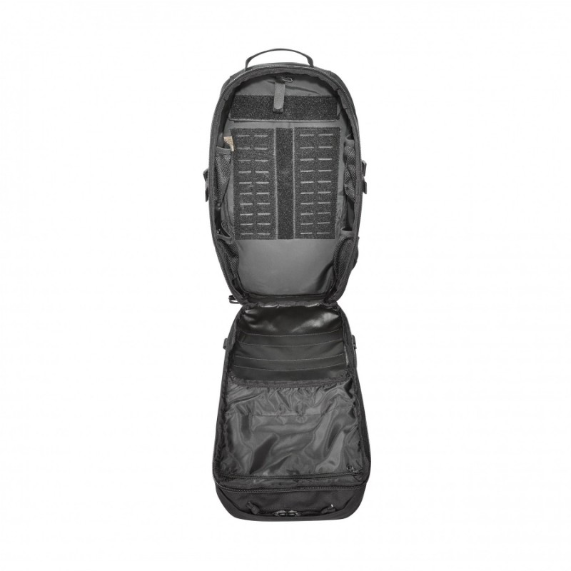 Komora główna otwierana na całej długości zapewnia natychmiastowy dostęp do przenoszonej zawartości. Wewnątrz znajdują się panele Velcro w systemie Laser Cut, pozwalające na montaż modułowych organizerów oraz małe kieszenie siatkowe na baterie, magazynki czy drobny sprzęt. Dwie pojemne kieszenie frontowe z dodatkowymi przegrodami i panelami z rzepem pozwalają zachować porządek.