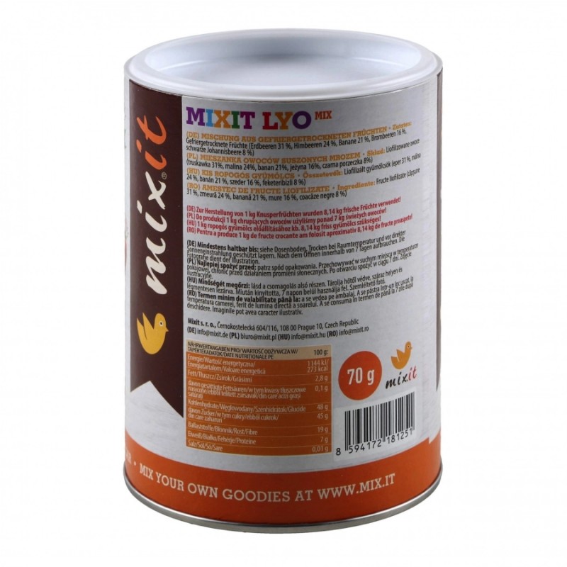 Chrupiące owoce Mixit 70 g to suszone mrozem owoce zapakowane w kompaktowej tubie. Spróbuj wyjątkowych malin, truskawek, jeżyn, czarnych porzeczek i bananów w ich najsmaczniejszej formie, wolnej od konserwantów i innych dodatków.