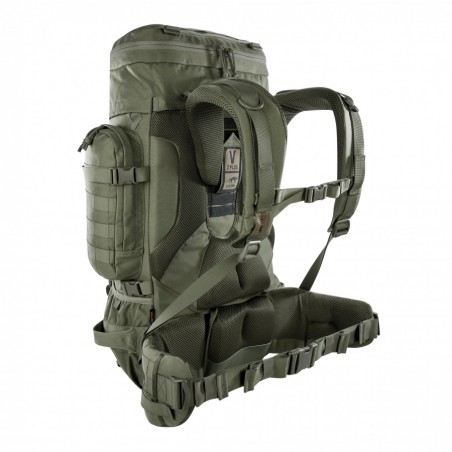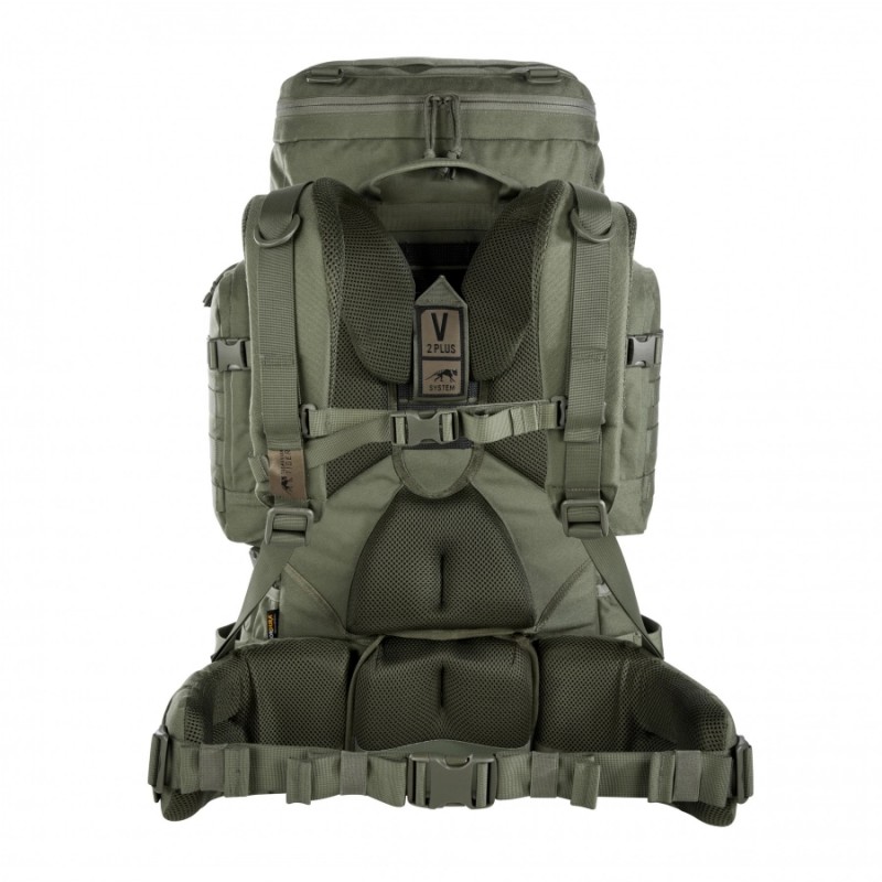 Zaawansowany system nośny V2 Plus umożliwia regulację długości pleców, co pozwala idealnie dopasować plecak do wzrostu użytkownika. Szerokie, ergonomicznie wyprofilowane szelki równomiernie rozkładają ciężar na barkach, zmniejszając zmęczenie podczas długich marszów. Regulowany pas piersiowy oraz szeroki pas biodrowy zwiększają stabilność, a możliwość odpięcia pasa biodrowego i użycia go jako samodzielnego pasa taktycznego znacząco podnosi uniwersalność zestawu.