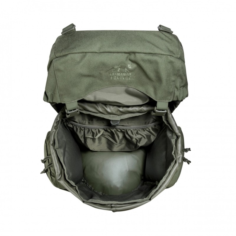 Klasyczna, rurowa konstrukcja zamykana klapą z regulowanymi klamrami zapewnia szybki dostęp do zawartości oraz wysoką odporność na warunki atmosferyczne. Komora główna może zostać podzielona na dwie części, co ułatwia organizację wyposażenia, a dolny dostęp zamykany zamkiem błyskawicznym pozwala sięgnąć po sprzęt bez konieczności rozpakowywania całości. Kieszeń w klapie oraz możliwość dopięcia kieszeni bocznych zwiększają funkcjonalność podczas długich działań w terenie.