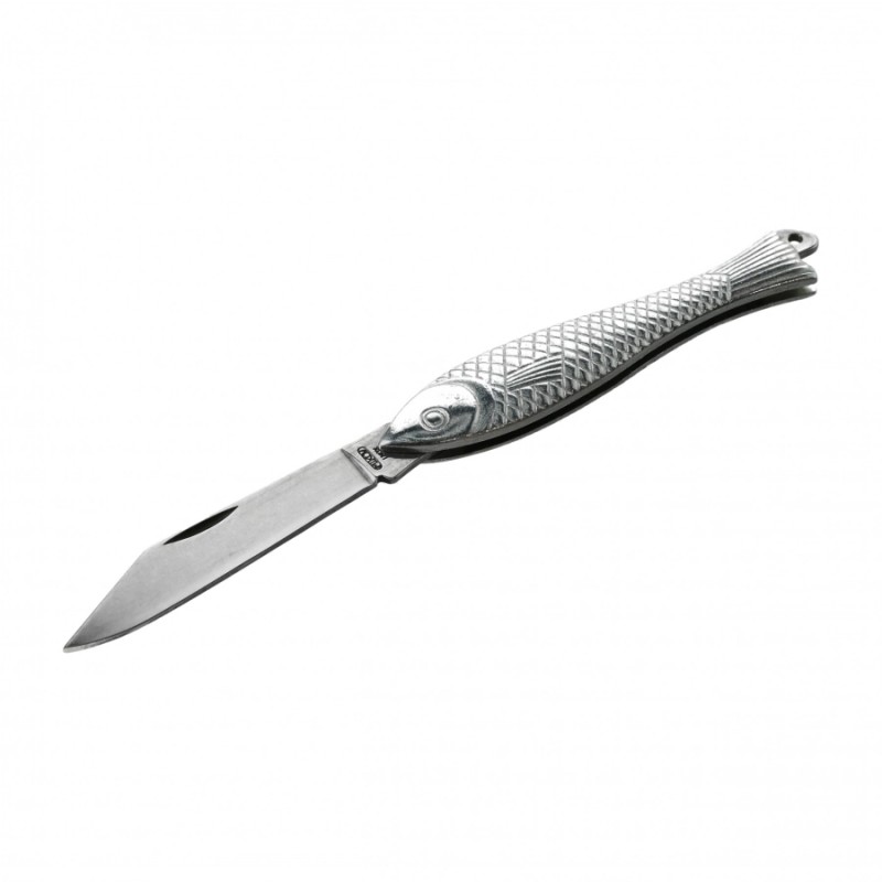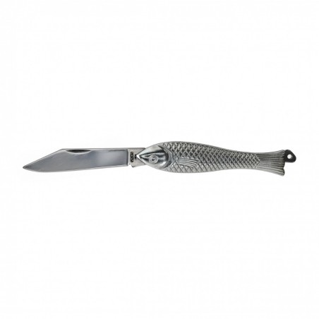 Scyzoryk Mikov Fishlet 130 CLASSIC 130-NZn-1 to legenda wśród składanych noży kieszonkowych produkcji renomowanej, czeskiej marki Mikov. Jest to popularna Rybička, które kiedyś praktycznie każdy z nas miał w swoim posiadaniu. Pierwszy nóż o charakterystycznej rękojeści w kształcie ryby powstał ponad 100 lat temu. Dziś kształt nie uległ zmianie, natomiast chwyt został wykonany z lekkiego stopu cynku w miejsce drewna. Ostrze noża wykonane jest ze stali nierdzewnej 420 o twardości na poziomie 52-55 HRC. Do noża można doczepić linkę lub smycz. Dzięki swoim rozmiarom zmieści się w każdej kieszeni czy przyborniku.
