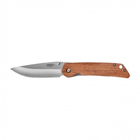 Joker JKR-658 to myśliwski nóż składany, w którym zastosowano ostrze ze stali nierdzewnej Mova, sprawdzoną blokadę liner-lock oraz proste drewniane okładziny.