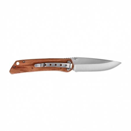 Nóż ma klasyczne okładziny z drewna, mocowane śrubami do stalowych wkładek wzmacniających. Podcięcie na palec wskazujący oraz smukły kontur rękojeści ułatwiają operowanie nożem oraz zapewniają pewny chwyt.