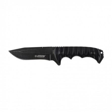 Nóż wojskowy Kandar N151 o profilu głowni typu Clip Point, wyposażony w stałą klingę o konstrukcji full tang, to wszechstronne narzędzie idealne do uniwersalnych zastosowań. Głownia wykonana jest z wysokiej jakości stali nierdzewnej, co zapewnia doskonałą trwałość i odporność na korozję, czyniąc nóż niezawodnym w różnych warunkach.