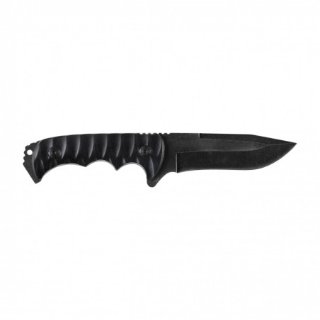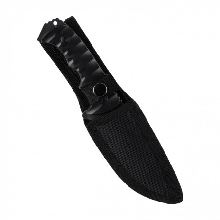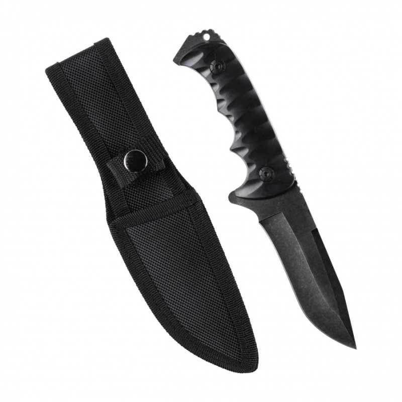 Rękojeść noża została wykonana z wytrzymałego tworzywa sztucznego, co gwarantuje pewny i wygodny chwyt, nawet podczas długotrwałego użytkowania. W zestawie znajduje się pochewka z cordury, która zapewnia bezpieczne przechowywanie noża oraz ułatwia jego transport.