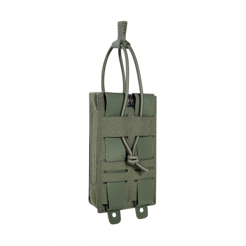 Trójwarstwowa budowa ścian zapewnia stabilność kształtu, dzięki czemu ładownica nie zapada się po wyjęciu magazynka. Elastyczne zamknięcie na sznurek z ergonomicznym uchwytem umożliwia szybkie zabezpieczenie zawartości i błyskawiczny dostęp, bez zbędnych ruchów. Wypustki 3D z polimeru Mag poprawiają trzymanie magazynka, minimalizując ryzyko jego przypadkowego wypadnięcia, a jednocześnie nie spowalniają dobycia.