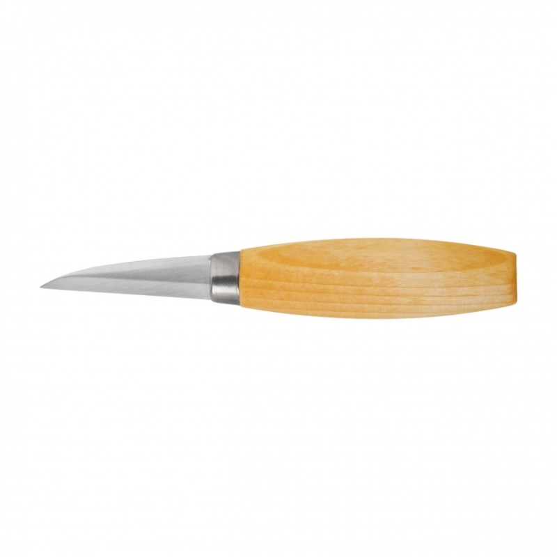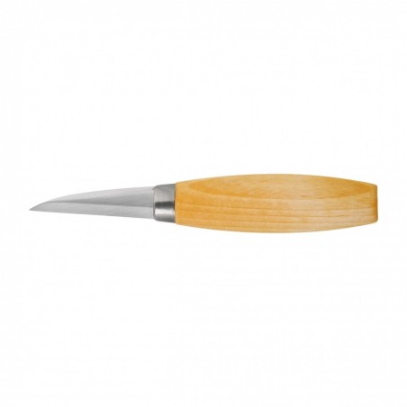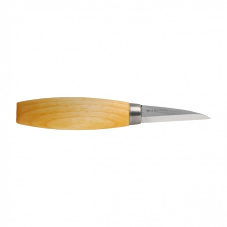 Morakniv Wood Carving 122 to nóż do zdobienia, wyposażony w ostrze z laminowanej stali węglowej o twardości aż 60 HRC oraz tradycyjną rękojeść z olejowanego drewna brzozy.