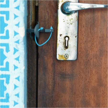Konstrukcja blokady została zaprojektowana z myślą o maksymalnej wygodzie użytkownika. Montaż i demontaż są szybkie i intuicyjne, nie wymagają żadnych narzędzi ani ingerencji w drzwi czy framugę, dzięki czemu nie pozostają po niej żadne ślady ani uszkodzenia. Uniwersalny kształt sprawia, że pasuje do większości standardowych drzwi, a połączone ze sobą elementy eliminują ryzyko zgubienia którejkolwiek części.
