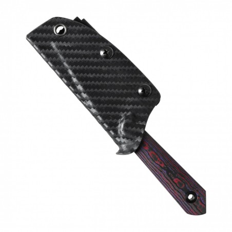 Rękojeść noża tworzą okładziny wykonane z włókna węglowego. Materiał ten cechuje się niezwykłą wytrzymałością zarówno na czynniki atmosferyczne, jak i na wysoką temperaturę. Włókno takie jest odporne również na uszkodzenia mechaniczne oraz działanie substancji chemicznych takich jak rozpuszczalniki, smary czy kwasy. Wraz z nożem otrzymasz pochwę z twardego tworzywa. Do noża możesz przytroczyć paracord bądź smycz.
