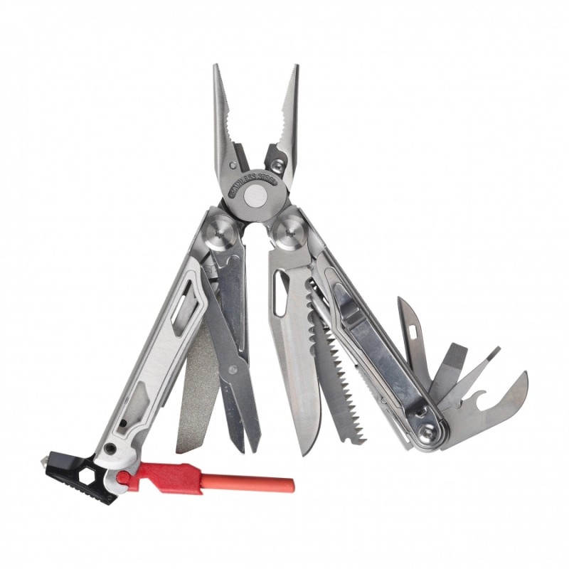 Model oferuje zestaw narzędzi pozwalających działać skutecznie w niemal każdej sytuacji – od pracy warsztatowej po działania outdoorowe. Jedno narzędzie zastępuje cały zestaw naprawczy. Dodatkowo krzesiwo umożliwia rozpalenie ognia w trudnych warunkach pogodowych, a gwizdek alarmowy może pomóc w sytuacji awaryjnej.