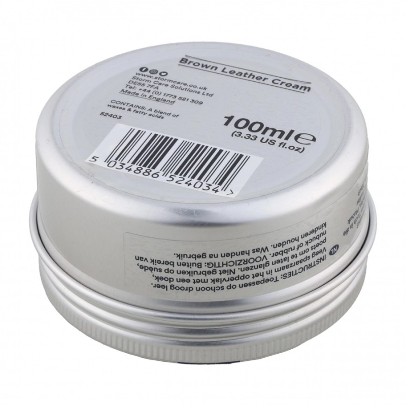 Krem STORM Leather Cream — Brown to specjalistyczny preparat stworzony z myślą o kompleksowej ochronie i konserwacji naturalnej skóry. Zawiera sprawdzoną recepturę na bazie wody, która została wzbogacona woskiem Carnauba. Dzięki temu środek wydobywa głęboki połysk i intensywnie odżywia strukturę materiału skórzanego. Składniki aktywne tworzą na powierzchni trwałą warstwę hydrofobową, skutecznie zabezpieczając odzież oraz obuwie przed niekorzystnym wpływem wody, oraz zabrudzeniami. Systematyczne stosowanie kremu zapobiega wysychaniu oraz pękaniu z wiekiem skóry, przywracając jej odpowiednią estetykę oraz fabryczną wytrzymałość.